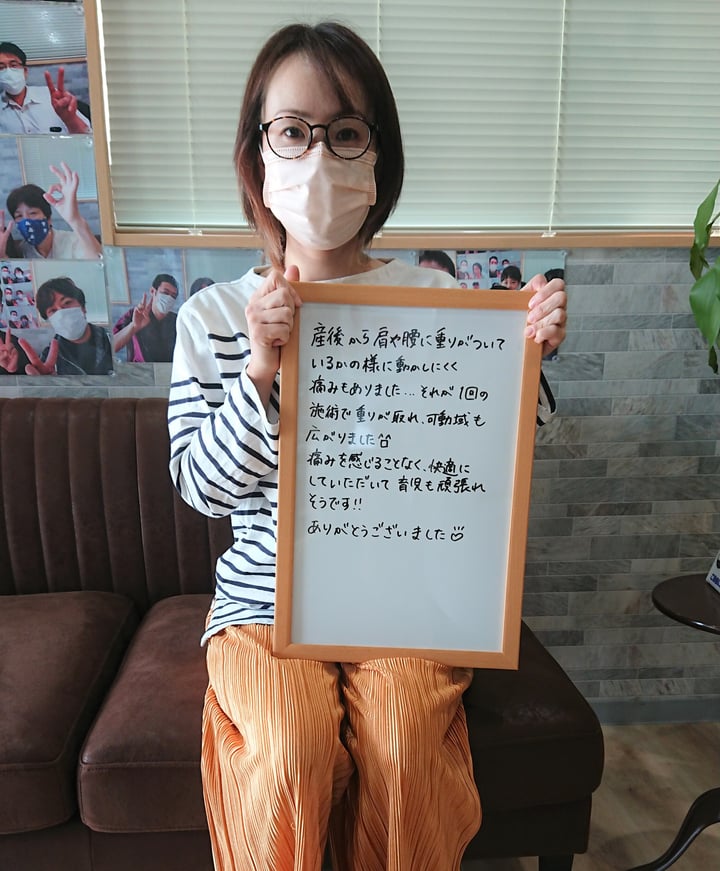 整形外科に通っても改善しなかった肩の痛みに悩んでいた方々からも「一度の施術で腕が上がるようになって驚いた」「腰痛や肩こりも改善して快適に過ごせるようになった」など、多くのお喜びの声をいただいております。四十肩・五十肩の改善に欠かせない姿勢のアドバイスやストレッチなどのセルフケアもお任せください。